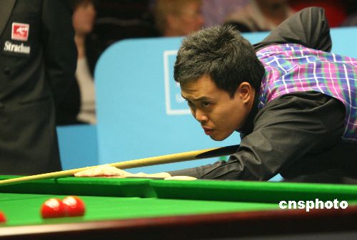 當地時間12月11日晚,英國泰爾福德,中國香港斯諾克選手傅家俊以九比二大比分戰勝對手喬·佩里,首次殺入斯諾克英錦賽八強。圖為傅家俊在比賽中。中新社發 李鵬 攝