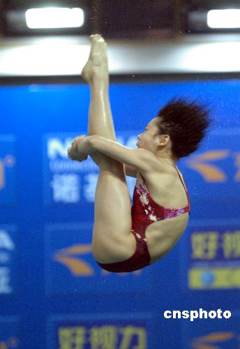 1月10日,2008年奧運會跳水選拔賽(濟南站)全部結束。在最后一天的比賽中,天津選手汪皓獲得女子10米跳臺冠軍。天津選手王鑫和江蘇選手陳若琳分獲第2、3名。中新社發 張侃 攝