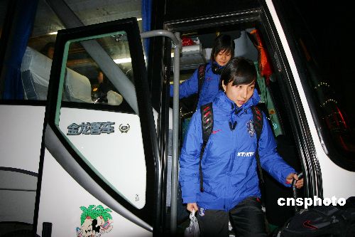 2月14日晚8時(shí)22分,韓國女子足球隊(duì)的隊(duì)員、教練員、球隊(duì)管理、隊(duì)醫(yī)共29名人員(其中隊(duì)員20名)在主教練安益秀的帶領(lǐng)下,抵達(dá)重慶江北國際機(jī)場(chǎng)。2月18日,東亞四強(qiáng)賽的女足比賽將在重慶“打響”。中新社發(fā) 陳仕川 攝
