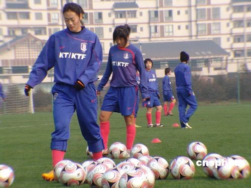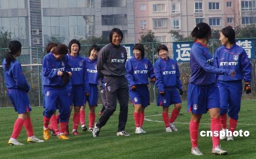2月15日,韓國女足隊員在綠茵場上輕松訓練。當日,韓國女子足球隊20名隊員在主教練安益秀帶領下,來到重慶文理學院足球訓練場進行戰術訓練,備戰東亞錦標賽。中新社發 陳仕川 攝