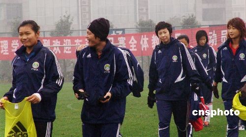 2月17日上午,中國女足在主教練伊麗莎白帶領(lǐng)下,在重慶文理學(xué)院足球訓(xùn)練場冒著春雨進行“靈敏度”訓(xùn)練及5打5的分組對抗訓(xùn)練。中新社發(fā) 陳仕川 攝