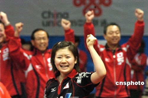 圖:世乒賽福原愛幫助日本隊戰勝韓國隊