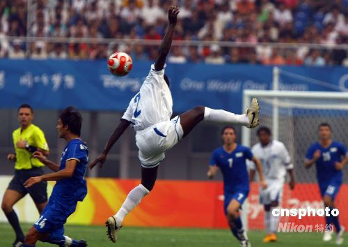 8月7日,北京奧運男足比賽開賽,洪都拉斯隊與意大利隊比賽在秦皇島奧體中心舉行,上半場意大利隊2:0暫時領先洪都拉斯隊。中新社記者 劉新 攝