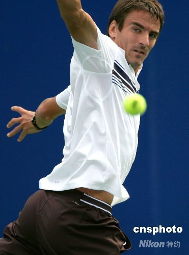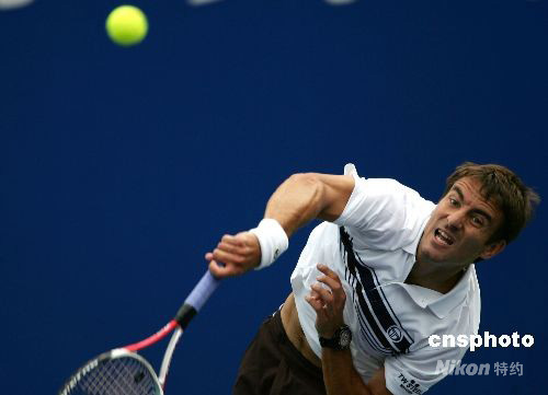 9月23日,2008年中國網球公開賽舉行男單首輪比賽,西班牙名將羅布雷多以6:4、7:5戰勝同胞洛佩茲,成功殺進男單第二輪比賽。 中新社發 富田 攝