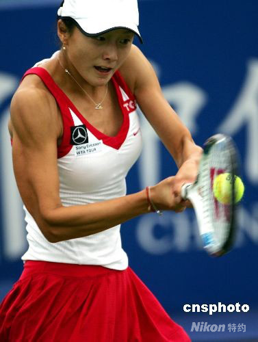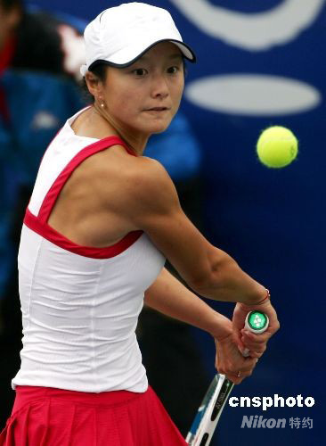 9月23日,中國選手晏紫在2008中國網球公開賽女子單打首輪比賽中,以0比2不敵日本選手杉山愛,被淘汰出局。 中新社發 富田 攝
