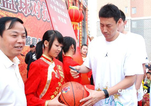 10月5日,“中心聯社杯”中美國際男子籃球對抗賽的隊員抵達湖南邵陽。在當日舉行的球星球迷見面會上,王治郅、李楠等國內外球星使場面異常火爆。中新社發 呂建設 攝