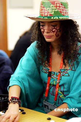 10月12日下午,由日本雙人圍棋協會組織的圍棋親善混雙賽在智運會賽場舉行,眾多棋手身著傳統民族服裝匯聚一堂。中新社發 富田 攝