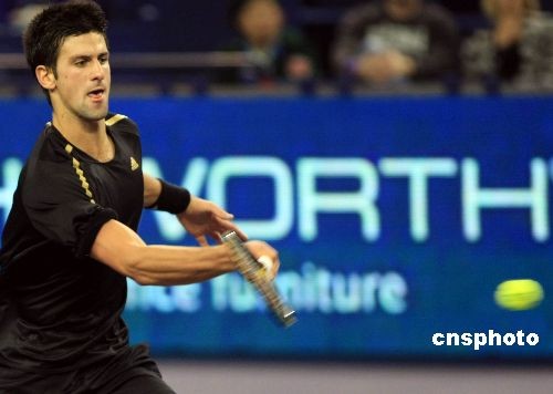 11月13日,在上海旗忠網球中心進行的上海大師杯單打金組最后一輪的比賽中,此前已經兩戰皆北的法國“阿里”特松加在晉級無望的情況下勇于拼搏上演大逆轉,以2比1戰勝世界排名第三的塞爾維亞選手德約科維奇,三盤比分是1-6/7-5/6-1,贏得榮譽之戰。中新社發 湯彥俊 攝
