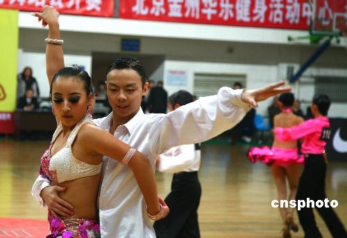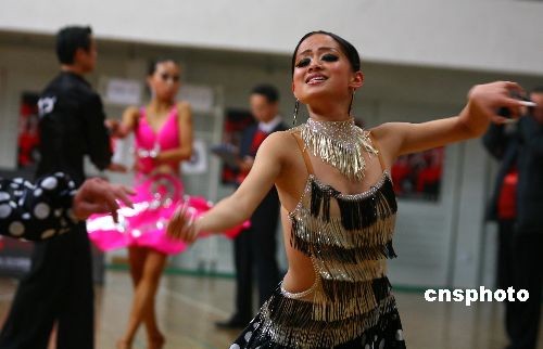 12月6日晚,由IDSA世界體育舞蹈協會(中國)總部和北京金州華樂健身活動中心主辦的“IDSA世界體育舞蹈協會(中國)體育舞蹈公開賽”在北京懷柔一中體育館開賽,來自云南、北京、浙江、重慶等32個省市、地區的800多名體育舞蹈選手參加,創下了體育舞蹈公開賽的新記錄。參賽選手最大的年齡70歲最小的只有5歲。公開賽歷時二天,共設體育舞蹈標準舞、拉丁舞、“規范”交誼舞團體舞,以及體育舞蹈莎爾莎舞、肚皮舞、時尚流行舞、阿根廷探戈舞等五大系列,比賽分為專業、職業、業余三大組別。這是全國體育舞蹈選手的一次巔峰對決,更是全面展示我國體育舞蹈發展水平的盛會。 中新社發 卜向東 攝