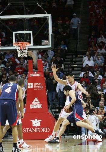 圖為姚明防守對方球員