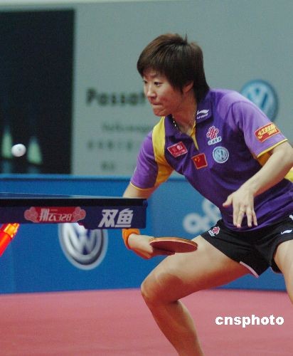 二零零八國際乒聯職業巡回賽總決賽十二月十四日晚在澳門落幕,中國選手郭焱四比二戰勝隊友郭躍,獲得女子單打冠軍。中新社發 畢永光 攝