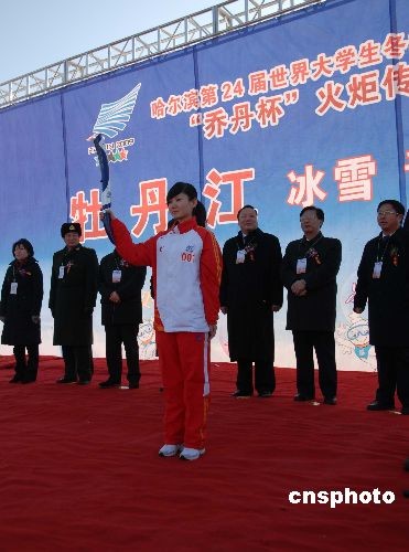 12月23日,大冬會火炬傳遞牡丹江站從牡丹江師范學院出發,全程3.3公里,至北山體育場結束。33名火炬手參加傳遞。火炬還將在黑龍江省七臺河、佳木斯和哈爾濱等城市進行傳遞。中新社發 張克非 攝