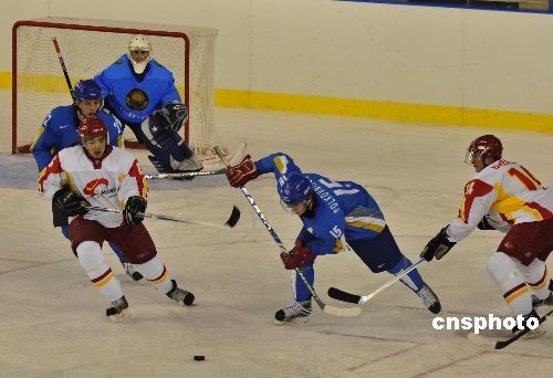 2月18日,大冬會各項比賽全面開戰。中國男子冰球隊不敵哈薩克斯坦男子冰球隊0:10落敗,而女子冰球隊以5:3戰勝斯洛伐克女子冰球隊。中新社發 濱海之光 攝