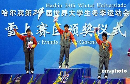 2月23日上午,第24屆大冬會第六天,在亞布力滑雪場中國男子運動員包攬了空中技巧個人滑雪的前三名。中新社發 姚庭山 攝