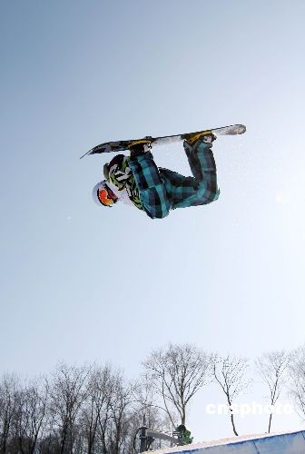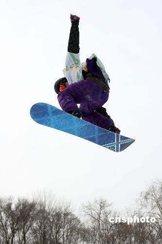 2月24日中午,在黑龍江哈爾濱舉行的大冬會比賽上,我國選手曾小燁、史萬成和徐德超在男子單板滑雪U池的預賽中順利過關,進入了決賽。中新社發 王韶驊 攝