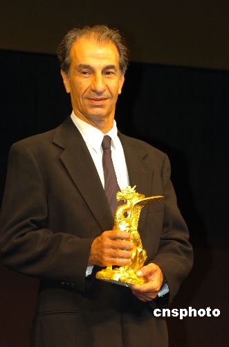 10月28日下午,第20屆東京國際電影節在東京澀谷文化村舉行頒獎典禮,以色列電影《樂隊來訪》獲得了最高獎項金麒麟大獎。圖為該片導演Eran Kolirin獲獎后手捧金麒麟獎杯發表感言。中新社發 滕劍峰 攝