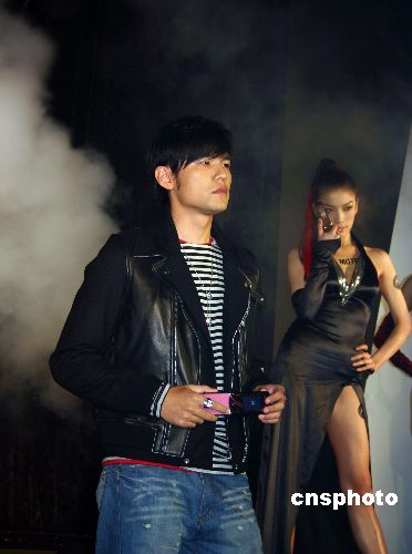 臺灣藝人周杰倫在臺北亮相,為某品牌的手機代言。中新社發 陳國華 攝