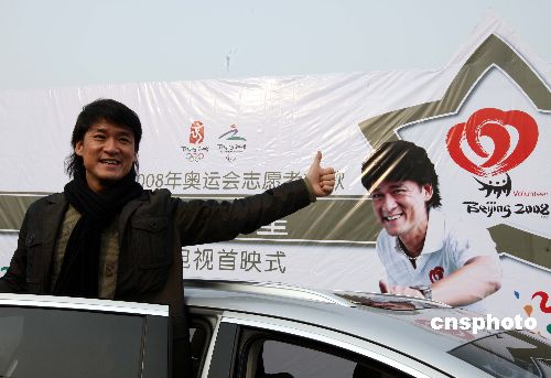 一月二十日,周華健在北京出席反映奧運(yùn)志愿者的MV音樂電視《我是明星》首發(fā)。中新社發(fā) 任海霞 攝