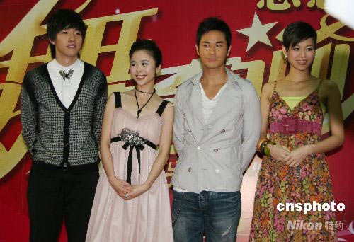 4月14日下午,由湖南衛(wèi)視聯(lián)合香港TVB傾情打造的明星舞蹈競技類節(jié)目——《舞動奇跡》第二季在長沙盛裝啟航。圖為俞灝明、楊若兮、鄭嘉穎、胡杏兒(從左至右)在亮相儀式上登場。中新社發(fā) 鄧霞 攝