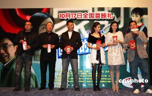 圖為主創人員合影。由范冰冰、杜汶澤領銜主演的,講述一位在職場取得成就的漂亮女主持人在一場大型直播秀中遇到的種種突發狀況,最終失去寶貴親情的主旋律實驗電影《回家的路》,10月17日在北京首都影城舉行首映式,導演方剛亮、主演范冰冰、杜汶澤等主創到場出席。這部帶有實驗性質的電影采用現場直播秀的獨特形式,從側面反映現代女性在光鮮亮麗的職業外表之下隱藏的家庭與事業的艱難抉擇。中新社發 王昊 攝