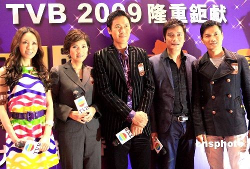 三月二十三日,第十三屆“香港國際影視展”在香港會展中心開幕。圖為演員呂良偉、羅嘉良、馬德鐘、郭可盈等出席《富貴門》開幕儀式并合影。中新社發 張勤 攝