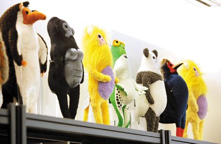 來自高雄的盧袗云與莊瑞豪,兩個年齡相仿,因為熱愛藝術赴日留學,回臺灣共同創辦“兩個八月”創意設計公司。一年多來,兩位大男生以一針一線縫出48只動物布偶,做成“沒有生命的動物園”,這些五顏六色布偶的表情與一般可愛布偶很不同,看起來已經沒有生命。盧云袗說,“這些布偶主要是教育小朋友,要愛地球,否則可愛動物會面臨死亡威脅。”