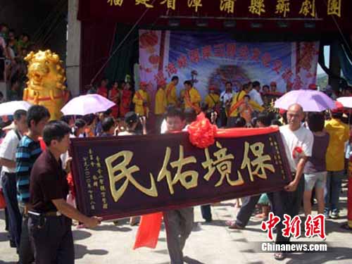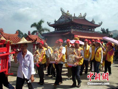 中新網(wǎng)漳州7月9日電(張文藝)臺灣“三官大帝廟”尋根謁祖團(tuán)90余人,8日到福建漳浦赤嶺畬族鄉(xiāng)認(rèn)祖祭祖,進(jìn)行相關(guān)民間民俗文化交流活動。