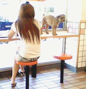 據悉,19日上午九點多,臺東一對情侶帶著一只小狗到某快餐店,兩人坐在長條餐桌的位子用餐,直接把狗放在桌上;狗就在餐桌上走來走去或躺或坐,直到用餐完畢,兩人才抱著狗離開。