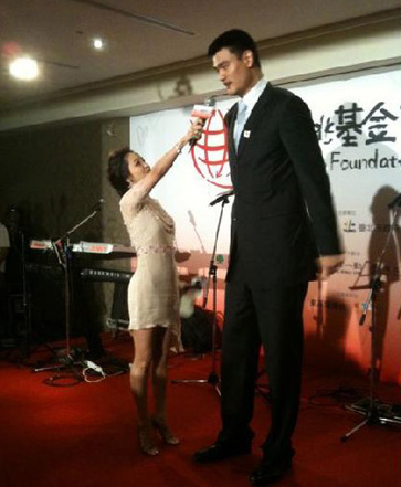 中新網7月28日電 據臺灣“今日新聞”報道,臺灣美女主播侯佩岑27日為姚明“姚基金慈善之旅”主持募款晚會,兩人因身高太懸殊,侯佩岑配合高舉話筒采訪姚明,她笑言畫面呈現就像爸爸帶著小孩一樣。