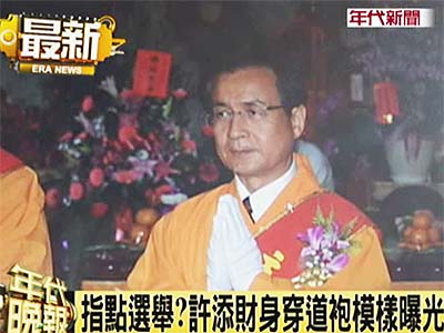 中新網8月6日電 據臺灣“今日新聞網”報道,民進黨高雄縣長楊秋興宣布參選大高雄市長之后,同黨籍臺南市長許添財的下一步要怎么做備受外界關注,有媒體取得許添財前往濟公廟參拜的照片,直擊許添財身穿濟公道袍參加法會的虔誠模樣。外傳廟中的濟公師父還曾經給許添財指點迷津,建議他8月8日當天宣布參選大臺南。
