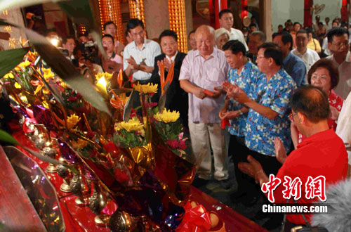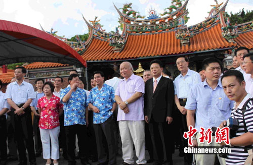 中新網新竹8月18日電(記者 張傳熙)率領廣東省經貿文化交流團訪臺的黃華華省長今天下午從臺北抵達新竹縣展開尋親、訪友的“鄉情之旅”。下午,在新竹縣領導人邱鏡淳及眾多鄉親的陪同下,黃華華到當地代表客家文化的義民廟行禮、祭拜。