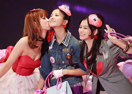 徐若瑄日前在微博上炮轟經紀公司冷落她,引發各界關注,但是這件事并沒有影響她在臺上的演出,秀出翹臀、眨眼裝可愛。粉紅色短褲搭配黑色高跟鞋,讓她的腿顯得特別修長,既性感又可愛的扮相獲得滿堂彩。