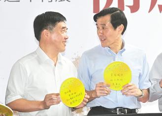 馬英九更肯定郝龍斌垃圾減量的成績,還說“‘環保署長’來做臺北市長果然不同凡響”,并祝“臺北市興興旺旺,郝龍斌心想事成”,隨后更寫下“幸福城市,好上加好”的祈福文字。