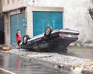 中新網(wǎng)9月20日電 據(jù)臺(tái)灣《聯(lián)合報(bào)》報(bào)道,臺(tái)風(fēng)“凡那比”(大陸稱“凡亞比”)強(qiáng)勁,花蓮刮起17級強(qiáng)風(fēng),一整排十多輛轎車車窗被吹裂“開花”,轎車四腳朝天,摩托車騎士閃躲滿天飛舞的招牌鐵片,有民眾以“血滴子”來形容它的恐怖。