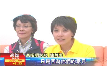 知道支持者車子被砸壞,黃昭順立刻召開記者會,譴責暴力,黃昭順的女兒陳菁徽替母親抱不平,委屈地流下眼淚。陳菁徽說道:“我不希望我們第二代、第三代,生活在這個城市里感到恐懼,只是因為他們的意見,跟別人都不一樣。”