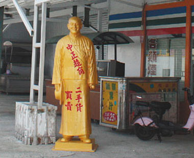 黃姓老板說,他沒有任何政治信仰,只因店正好開在東港鎮中正路上,“我心想既然在中正路開店,就取名中正超商”;后來又想,如果店門口再擺一座蔣中正銅像,“那就更傳神了!”