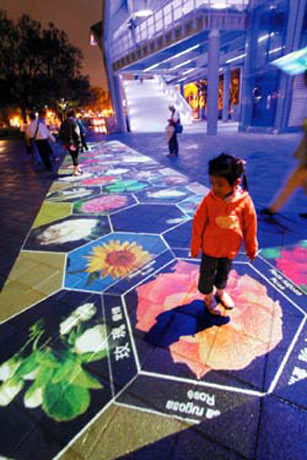 中新網10月27日電 據臺灣《聯合報》報道,臺北花博測試28日將是最后一天,25日起開放夜間入園后,除大直橋藍色光雕令民眾驚艷,走進“圓山投影互動光雕”感應區,每踩下一個花苞,花朵會瞬間綻放,四周還顯示花卉信息,成夜間新景點。