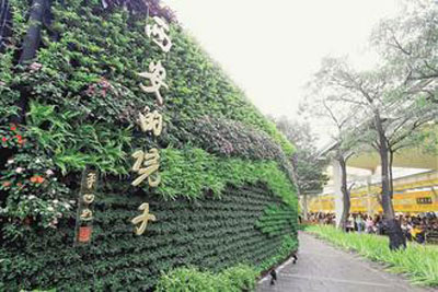 此外,“人文之墻”打造唐朝長(zhǎng)安的知名景點(diǎn)“曲江池”,池里種滿芙蓉,池畔墻上鐫刻宋陸游之作“多情誰似南山月,特地暮云開。灞橋煙柳,曲江池館,應(yīng)待人來。”是詩人興嘆,更是西安在花博的迎賓辭。“生態(tài)之墻”則用大片花草藤木環(huán)繞庭園,象征現(xiàn)代生態(tài)文明及綠色經(jīng)濟(jì)。