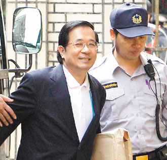 報(bào)道說(shuō),陳水扁穿著西裝,頭發(fā)長(zhǎng)長(zhǎng)了許多,不過(guò)梳里得相當(dāng)整齊,他手里拿著一個(gè)紙袋進(jìn)入高院,為“機(jī)密外交”案做好答辯準(zhǔn)備。短暫的露面時(shí)間內(nèi),陳水扁始終笑容滿面,支持者一旁也相當(dāng)興奮高呼口號(hào)。