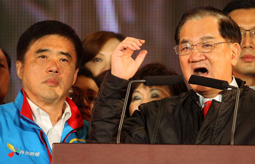連戰說,現在臺灣跟大陸關系有顯著改善,也離金融風暴愈來愈遠,可以說一片欣欣向榮,“五都”選舉是讓臺灣重新發展再度沖刺的好機會。