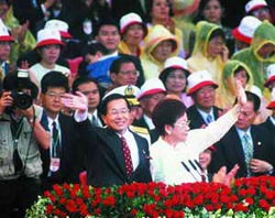 一九九四年,陳水扁在初選中擊敗謝長廷,參選第一次開放直選的臺北市長。不可否認,悲情,尤其是吳淑珍所代表的受難形象,在“謝下陳上”變化中,扮演了相當重要的角色。然而一反眾人預期,正式選戰中,陳水扁卻轉而打出“快樂、希望”的口號,并成功坐上市長寶座,創造了另一項奇跡。