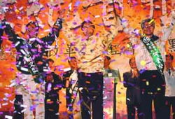 然后二○○四年“大選”來了,國民黨早早進行“連宋合”的團結,看來似乎又要重演一九九八年臺北市長選舉的戲碼。居于劣勢,陳水扁使出全力,在投票前夕神奇地發生了“兩顆子彈”的事件,讓他在“大選”中以兩萬票的差距險勝。除了“奇跡”,還能如何稱呼這樣的轉折變化呢?