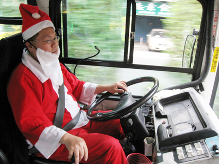 中新網12月20日電 隨著圣誕節到來,臺北市某客運公司約五百名司機最近又悄悄變裝,打扮成圣誕老公公的模樣,讓平淡的公交車之旅變得更多采多姿,也平添不少歡欣的過節氣氛。