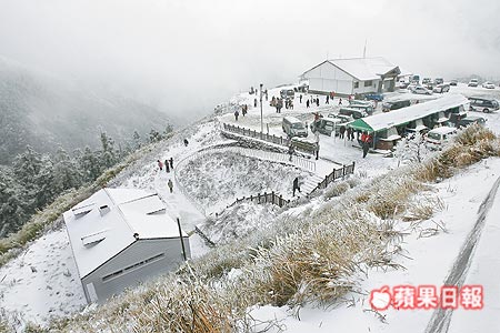 7千人上山賞雪 臺灣合歡山塞車7公里(組圖)