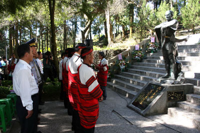 中新網10月26日電 霧社起義事件迄今已七十七年,為緬懷“原住民”抗日英雄莫那魯道,臺灣南投縣多個單位今天在霧社抗日紀念碑前舉行祭典,一同向烈士英靈致敬。