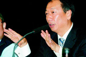 郭臺銘表示,去年裁員3%-5%人員,但是增加研發人員,這一些投資看不到,就像好的瞻固存,誰能在此時投資,誰有專利,誰就是一波的winner。鴻海目前有一萬多件,是臺灣第一。未來鴻海有一部份很大的收入,來自專利,鴻海要轉型至“科技的鴻!,研發與專利一定不能少。