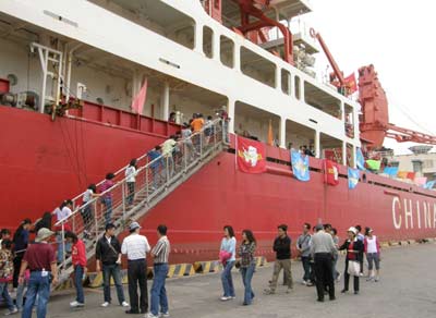 報(bào)道稱,海面上緩緩開進(jìn)高雄港的橘紅色船只,就是曾經(jīng)遠(yuǎn)赴南極考察21次的大陸破冰船“雪龍?zhí)枴保@次受海生館邀請(qǐng)赴臺(tái)開啟兩岸海航學(xué)術(shù)交流先例。
