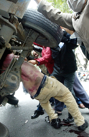 臺灣當局強拆“大中至正”匾額爆發流血事件,民眾彭盛露涉嫌駕駛小貨車瘋狂加速撞上東森攝影記者王瑞璋,王送醫急救后傷勢漸穩定,目前努力復建中。記者侯世駿/攝影