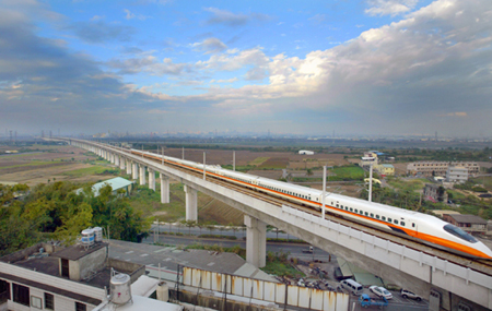 歷經一連串風波后,臺灣高鐵正式通車營運,成為臺灣交通史新的里程碑,目前旅客已突破1500萬人次。圖為高鐵列車通過彰化縣進入臺中縣前的畫面。記者于志旭/攝影
