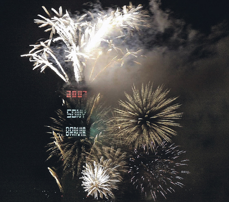迎接2007年,臺北地標101大樓施放璀璨炫麗的煙火營造新年歡樂氣氛。一年又過了,迎接2008的到來!記者侯世駿/攝影